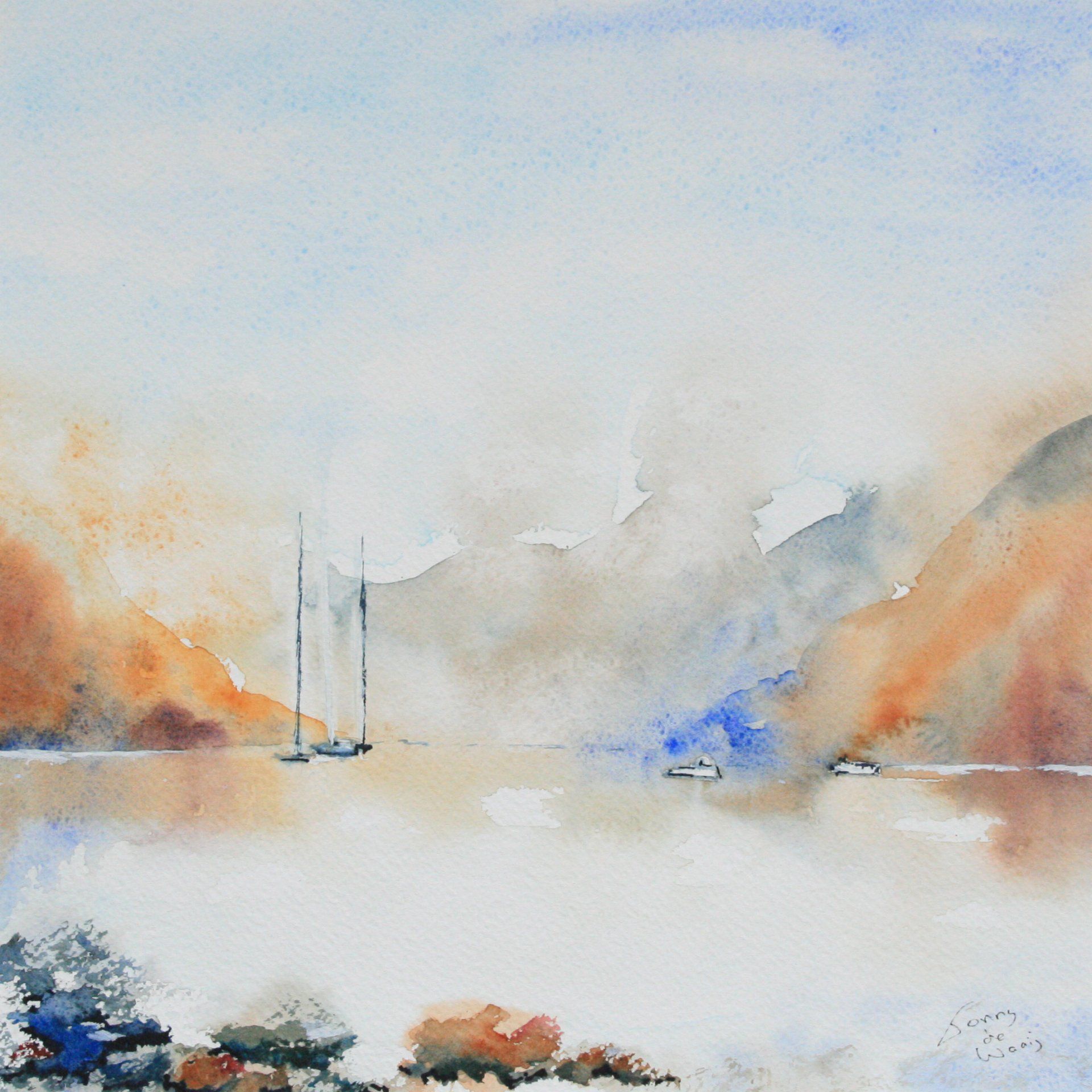 Aan het schilderen van de zee en meren, in met name Zeeland en Schotland, beleef ik veel plezier!